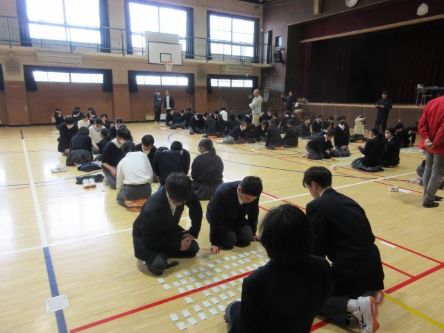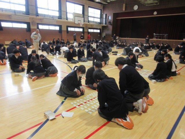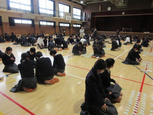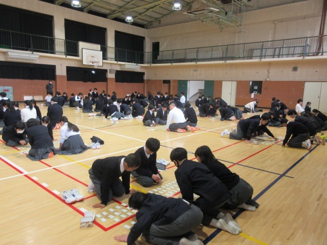 本日、5限・6限に、1年生は体育館で百人一首大会を行いました。