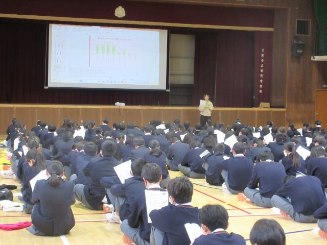 本日、2年生は、5限と6限に体育館で、養護教諭の籆田先生を講師として、性教育を実施しました。