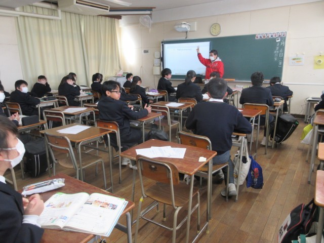 〈写真上〉1年4組(英語)