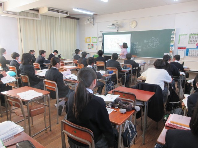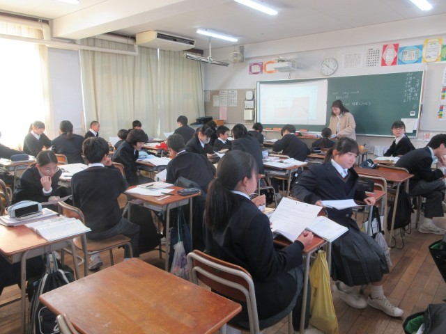 〈写真中〉1年2組(英語)