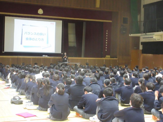 2年生は、本日、6限目に体育館で講師の先生をお迎えして、食育セミナーの取組を行いました。