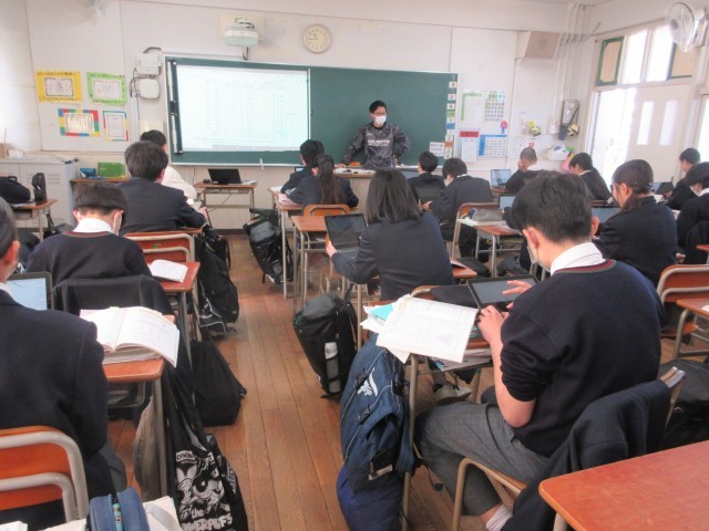 〈写真中〉1年2組(英語)