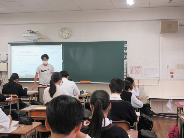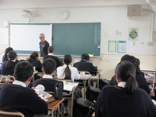 2年2組の社会では、授業開きが行われています。みんな真剣に先生の話を聞いていました。