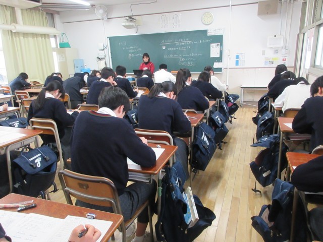 3年3組の理科では、習った内容の確認テストが行われていました。真剣な態度で問題に挑戦していました。