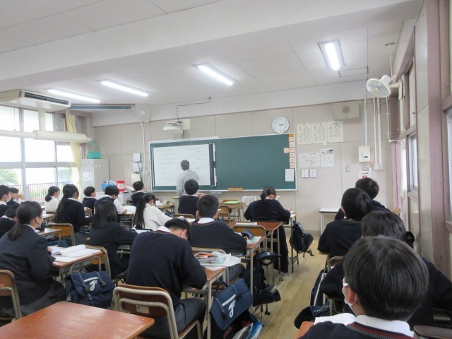 3年5組の数学では、乗法公式の問題に挑戦していました。集中して問題に向き合うようすが見られました。