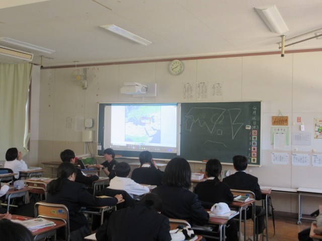 (上の写真)1年1組社会の授業です。積極的に発言してくれる人が多くて、とても意欲的な姿勢が印象的でした。