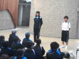 体育館1階のピロティで、解散式を行いました。 生徒代表の挨拶が終わり、学年主...