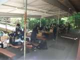 無事に学校へ戻って来ました。 体育館1階のピロティに、集合、整列します。