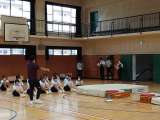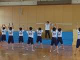 1年生で実習生による体育の研究授業が行われています。格技室でラジオ体操の授業と...