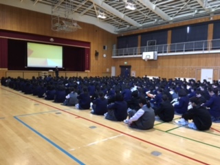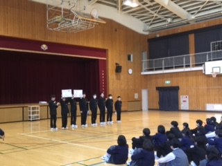 6限目に、1年生のオリエンテーションにて部活動紹介を行いました。各部活動の代表者が、1年生に部活動の紹介をします。各部とも創意工夫を凝らして部員の勧誘をおこなっていました。模範演技を行うクラブもありました。どのクラブに入部するかじっくり考えてほしいと思います。