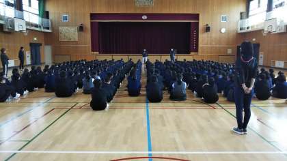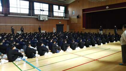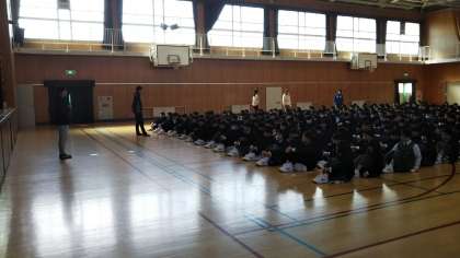 6限目の1年生の学活は、体育館で行いました。