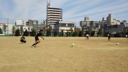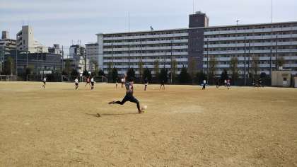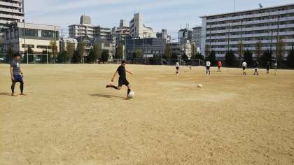ゴールに向けてキックの練習を先生も一緒に練習をしています。