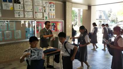 本日は朝の登校時に学級写真の申し込みを行っています。