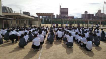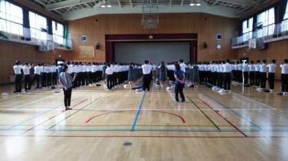 各学年、体育館で行われます、通常よりも少し余裕を持って