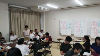 各班に分かれて、授業の「成果」・「課題」について話し合いました。