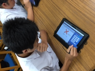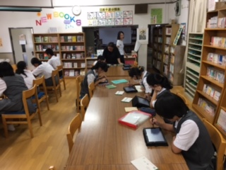 本校では、独自にベネッセの学習ソフトを導入しています。今日は、図書部の協力のもと実際に操作体験してもらいました。「家でもう使っている!」という声や、「まあまあ楽しい」「学習履歴が残るのでショック」といった様々な声がありました。大人たちが心配する以上に、すうっと操作に入ってゆき、いつの間にか黙々と問題を解いていました。小学校の復習もできますので特別支援学級でも有効です。放課後の復習などで活用を広げていければと考えています。