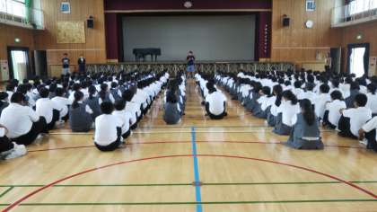 最後に、小林先生からは、学年集会後にキチンと列を整えて教室へ戻るようにとの連絡がありました。水曜日は1年生のみが、学年集会を行っています。他学年に迷惑にならないように教室まで戻りましょう。