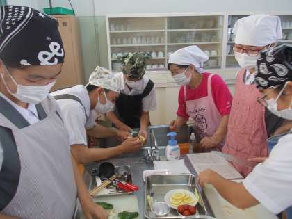 本日も、食生活改善推進員協議会の方々に、サポートしていただいて、みんなでつくったお料理を一緒に食べて、片づけまでがんばれたことに達成感を感じている様子が見られました。2年生7クラス、けがや事故なく実習できたことに、感謝しております。本当にありがとうございました!!