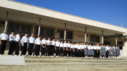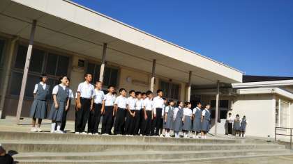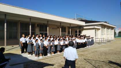 群読チームは、グランドで練習をしました。青空の中、とても大きな声をグランドに響かせてくれました。