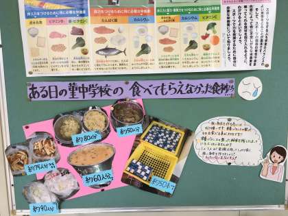 生徒の皆さんには、職員室の前を通ったときに、一度よく見てほしいと思います。皆さんの健康のためにも、ちょっと頑張って食べてみよう!となってもらえたらと考えて栄養教諭の先生が作ってくださいました。