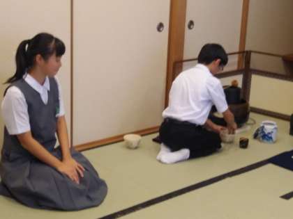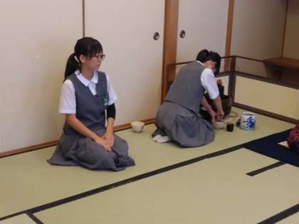 10月19日の土曜日に、鶴見区民センターで行われた大阪市立中学校総合文化祭において、茶道部がお点前を披露させていただきました。少し緊張感のある雰囲気の中、日頃の稽古の成果をお見せすることができました。今後もお茶を通して豊かな心と美しい所作を身につけましょう。