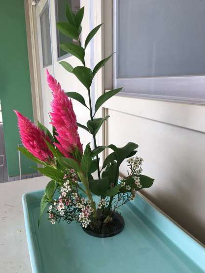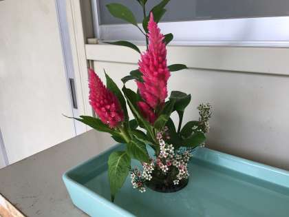 本日は、大きなケイトウを生けていただきました。見事な花穂です。いつもありがとうございます。