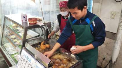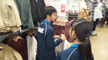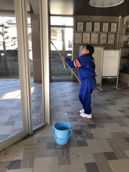 三枚目は中学校玄関のガラス清掃に取り組むところです。