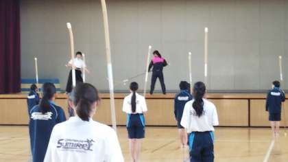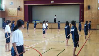 授業の最後には、はじめの目的であった、一年生との二人一組での実技もうまくこなせるようになり、「難しかったけれど、楽しかった」となぎなたの魅力を感じられる一時間になりました。
