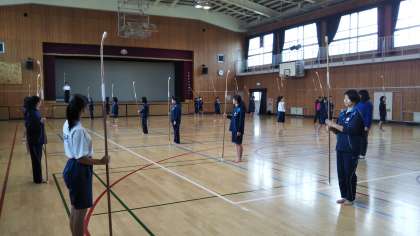 今日は、体育の授業で全日本薙刀連盟から来られた講師の先生をお招きし、
