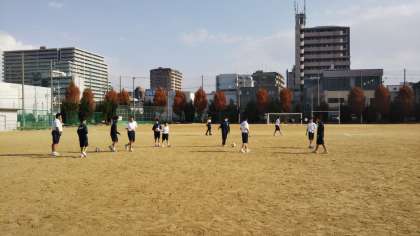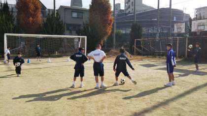 テストとパスの練習の2組に分かれ、楽しそうに授業に取り組んでいます。