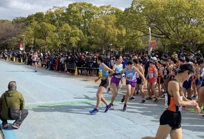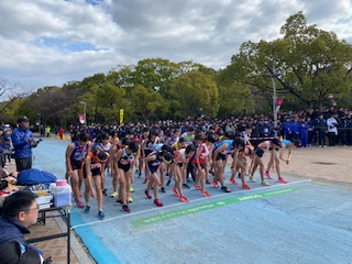 1月18日に長居競技場の周回道路で行われた、駅伝大会に陸上部が出場しました。この日のために、たくさん練習をつんできた結果が現れた試合となりました。今大会で女子が3区で区間賞を、総合では見事5位に入りました。男子も去年よりも順位を上げ、来年に期待できる試合でした。