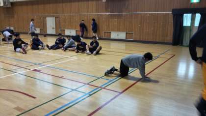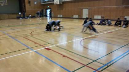 本日、明日の百人一首大会の準備のために体育館に行ったところ、男子バスケットボール部が体育館のフロアーを磨いてくれていました!