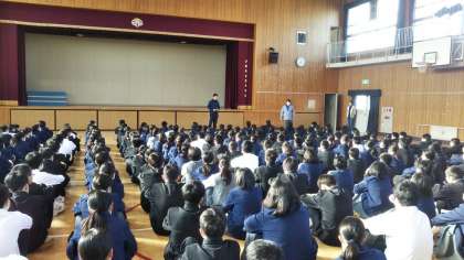 2月には、職業講話や車イスバスケットボールの方々が来校されます。