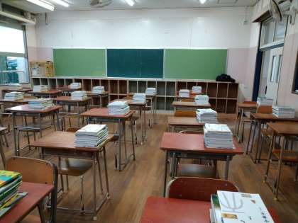 混乱を避けるために、教科書については、教室に1人ずつセットにして配置しております。