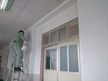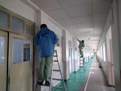 昨日、営繕班の方々が、北館校舎の壁をきれいに塗装をしてくださいました。