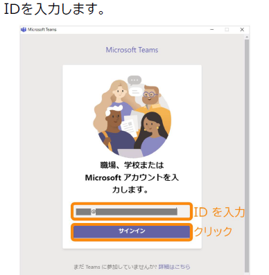 現在、「teams」の準備を進めております。下の画面を参考に入力をお願いいたします。
