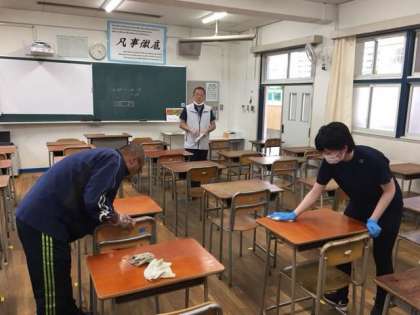 下校後の消毒作業