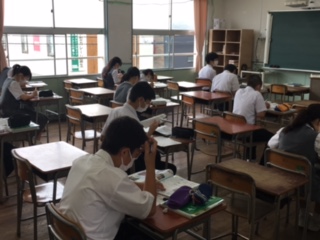 曇りがちの天気ですが、さわやかな風が吹いていて勉強に集中しやすかったのではないでしょうか。学活と授業(ガイダンス)がありましたが、とても真剣に先生の話に聞き入ってました。