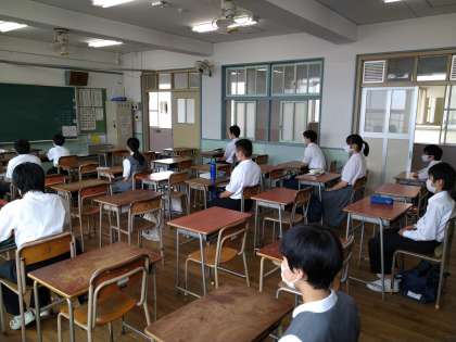 後半も同様に、令和2年度の始業は、まず校長先生の講話から始まりました。後半は、給食を食べてからの授業3時間でした。