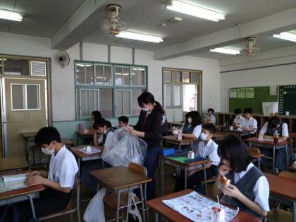 後片付けがスムーズにいくよう、先生がパンの袋等を回収してくれています。