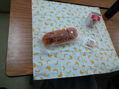 今日は、コッペパン・牛乳・リンゴジャムした。