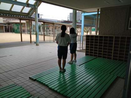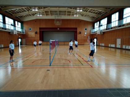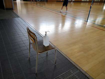 ラケット等の消毒や外で休憩など、密集を避ける形で行われていました。