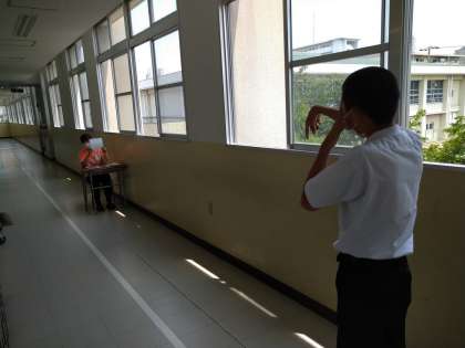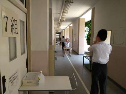 本日は、給食時間を終え、視力検査を実施しました。時間を有効に、工夫して活用しています。視力が落ちてきたと感じる人は、一度、眼科へ相談に足を運んでみましょう。