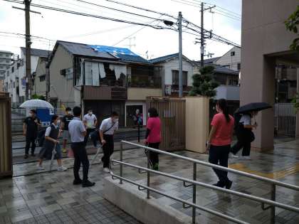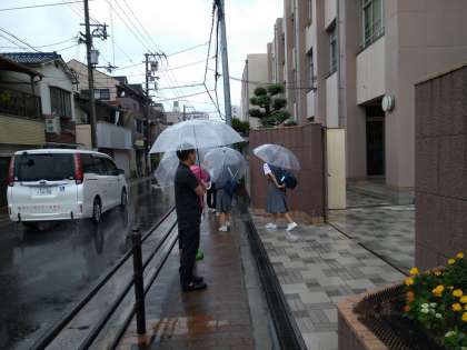 登下校する生徒たちに、「さようなら、気をつけて帰りや。」や「こんにちは!」などの声かけを多くの先生方が門の所でしております。