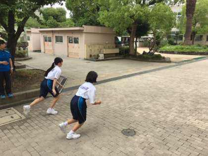 やや湿度の高いなかでしたが、子どもたちの元気いっぱい走る姿を見られました。頑張れ74期生!
