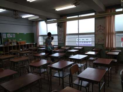 分散登校最終日の今日も放課後は、各学年・各学級で消毒作業を行っています。