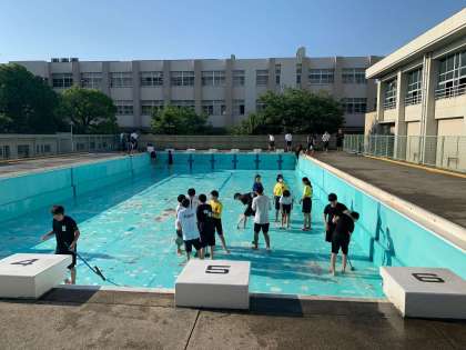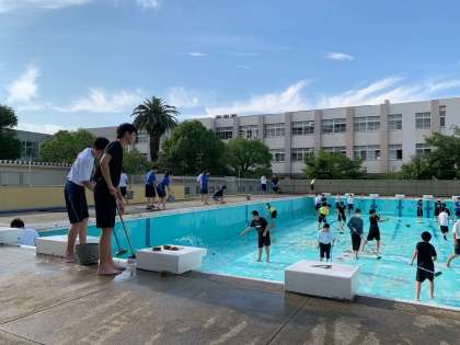 久しぶりに水を浴びて気持ちよさそうな顔をして掃除していました。