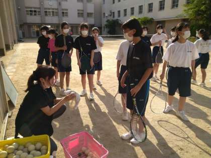 手・指の消毒と共にボールも消毒をし、感染防止対策を講じて、部活動を行っています!