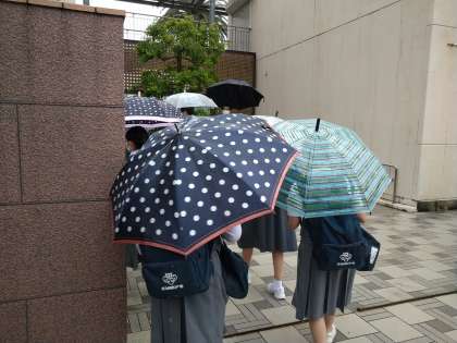 雨の中の登校となりました。色とりどりの傘の波が連なっていました。