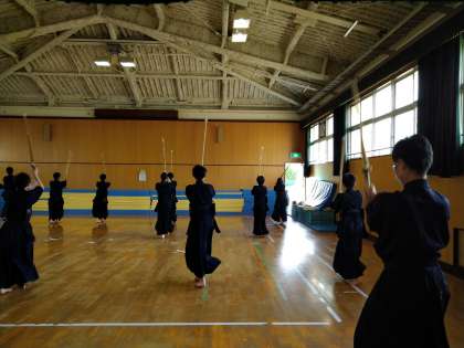 格技室では、剣道部が素振りをし、グランドでは、陸上部が全力で取り組んでいました。